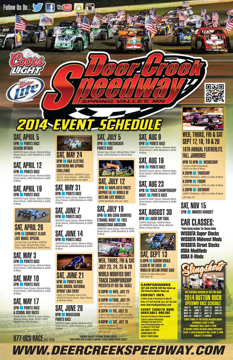 For more information visit us online at www.deercreekspeedway.com  or “LIKE� our Facebook Page. You can also follow us on Twitter @DeerCreekSpeed (#TheCreek) or on our YouTube channel.