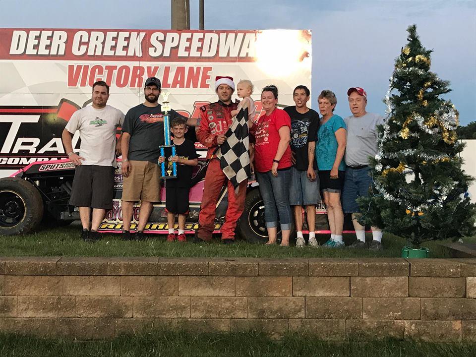 Spring Valley, MN (July 22) - By: Todd Narveson: This week at Deer Creek Speedway featured “Christmas In July� The track was decorated up for Christmas, Santa Claus was on hand and sled races were held to determine the weekly bike giveaway. There was also a campsite Christmas decoration contest at the campground. Clements Subaru also held a toy drive for the Salvation Army’s Toy & Joy Shop.